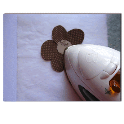 Ya con las piezas recortadas, retiramos papelito donde no está el dibujo. (Para las que no conocéis la entretela doble cara os explico que al menos la que yo uso tiene papel por las dos caras, y en medio la entretela que es muy fina). Una vez retirado planchamos en las telas elegidas...